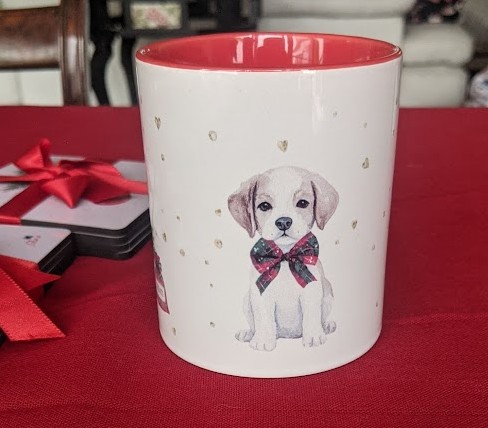 White, textured cotton fabric cushion cover with appliqué featuring two adorable dogs, very much in the Christmas spirit! Black, silk-blend frill and contrast stitching. Filling not included. Standard size. Pair. DRY CLEAN ONLY